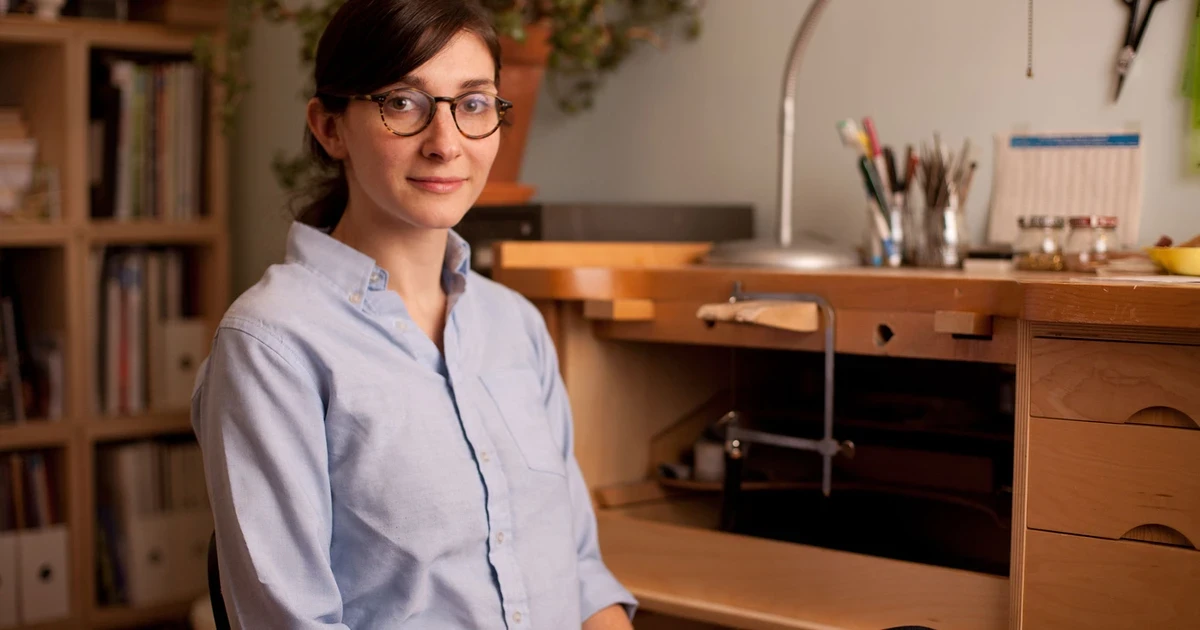 Melanie Bilenker (b. 1978) translates the historic art of Victorian hair jewelry into work that reflects upon the contemporary era. Her delicate pendants and brooches are wearable art objects, depicting ordinary moments of everyday life—making lunch, bathing, washing dishes—with "drawings" made from resin, gold, silver, and the artist's own hair. "I am looking for ways to conjure a sense of home for the viewer," Bilenker states, referring to both her subject matter and the medium of human hair. "I see hair as proof of existence, a souvenir." Often cited as a leader in the movement to return to craftsmanship in jewelry making, Bilenker has received commissions from the Museum of Arts & Design in New York City, the Philadelphia Museum of Art, and the National Museum of Scotland, among others. She was recently included in the 40 Under 40: Craft Futures exhibition, featuring traditional and non-traditional works of decorative art created by the top 40 American craft artists under the age of 40, assembled for the 40th anniversary of the Smithsonian American Art Museum's Renwick Gallery.