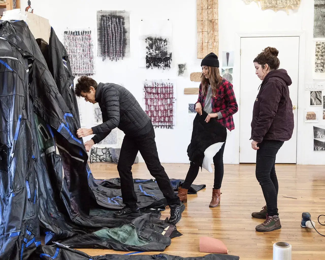 The Fabric Workshop and Museum (FWM) is an internationally recognized art museum with an active studio and artist-in-residence program. Research, construction, and fabrication occur on site in studios that are open to the public. Founded in 1977, FWM initially invited visual artists to Philadelphia to experiment with fabric in its workshops, and it later expanded tools to accommodate a wide range of innovative materials and media. Resident artists over the years have included Laurie Anderson, Mark Bradford, Louise Bourgeois, Glenn Ligon, Ed Ruscha, Yinka Shonibare, Sarah Sze, and dozens of others.